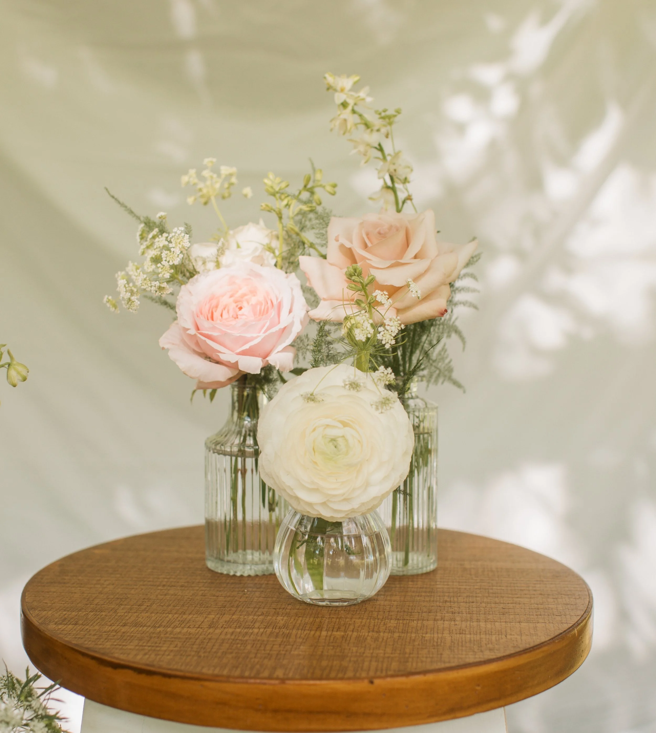 Petite arrangements paired with custom-designed prayer cards. Perfect for pews, brunch tables, or welcome areas. $15 each / $120 per dozen